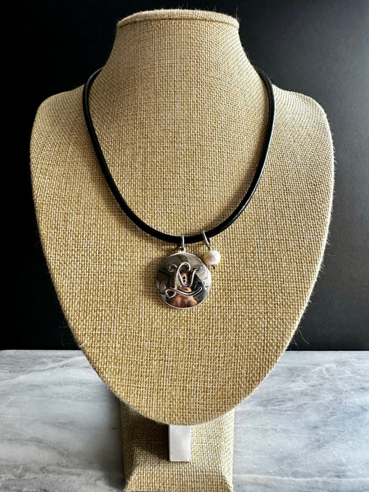 🖤 HUGE Authentic silver reworked Louis Vuitton button leather Necklace - VERY rare!