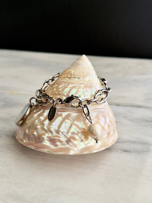 ✨ONE OF A KIND silver reworked button bracelet • rolo chain