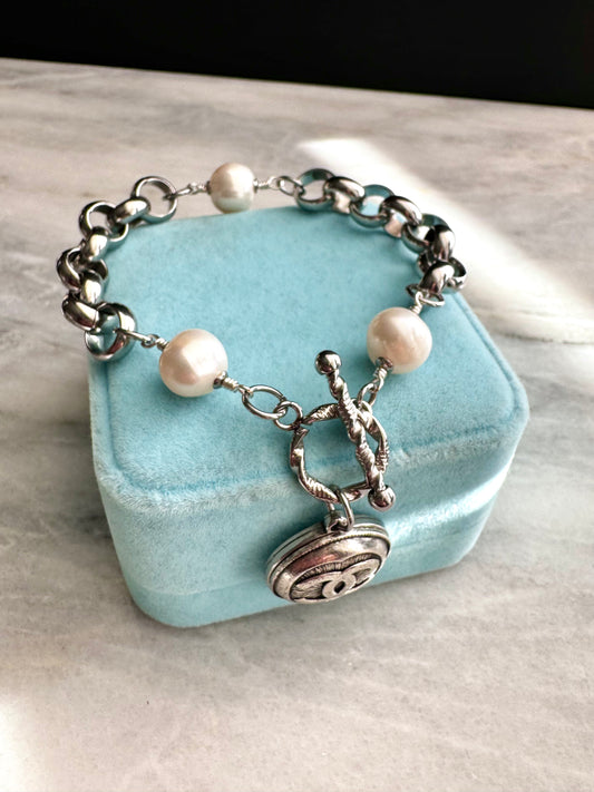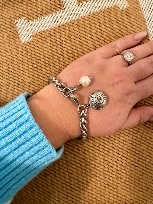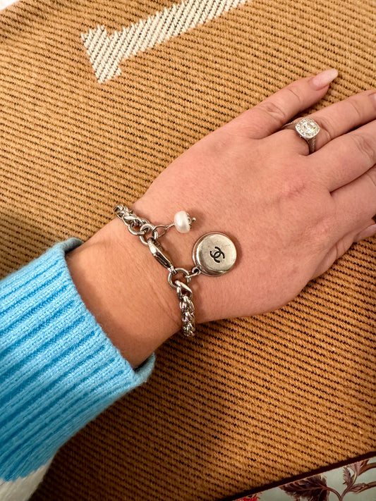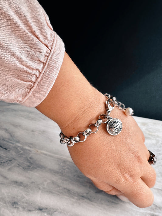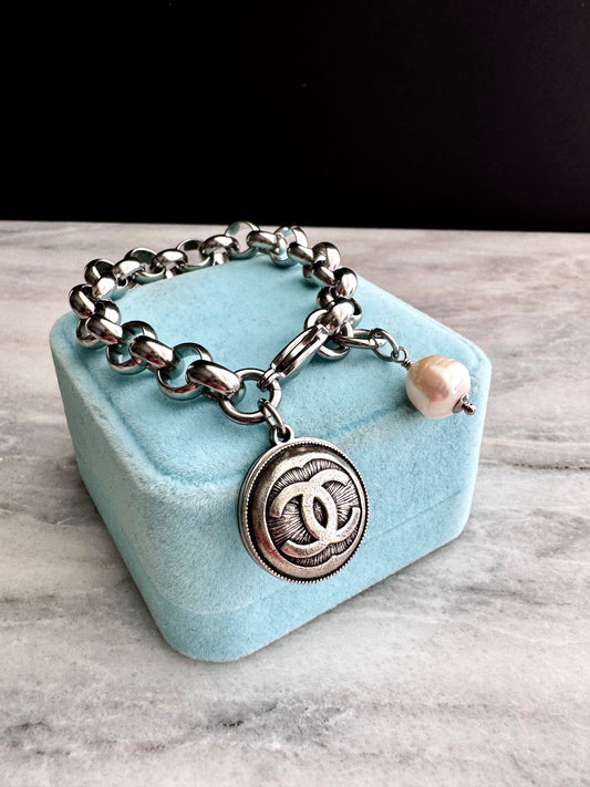 ✨ONE OF A KIND silver reworked button bracelet • rolo chain