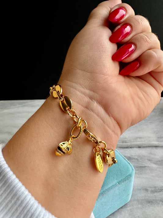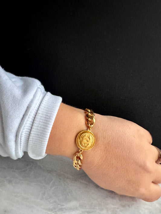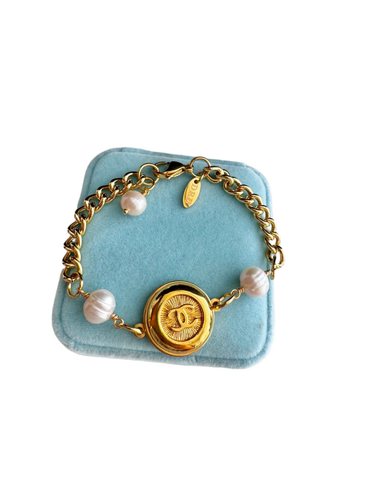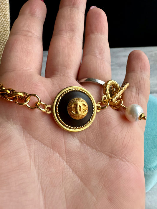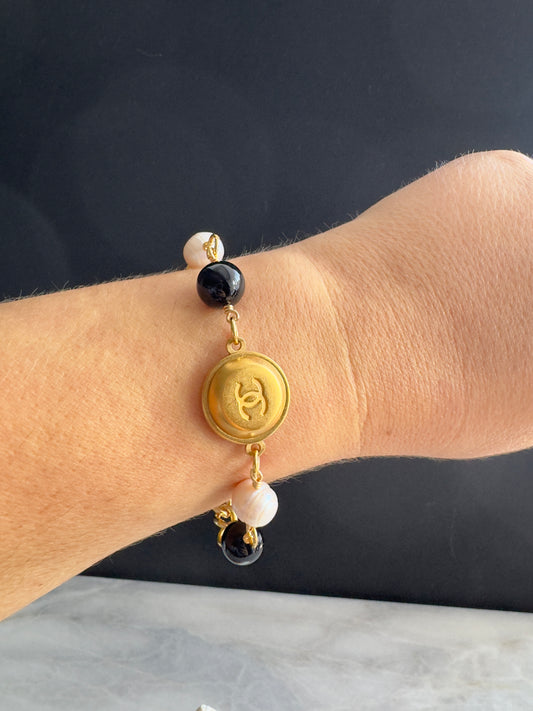 Gold chunky Authentic Reworked button bracelet with onyx and pearls 🖤