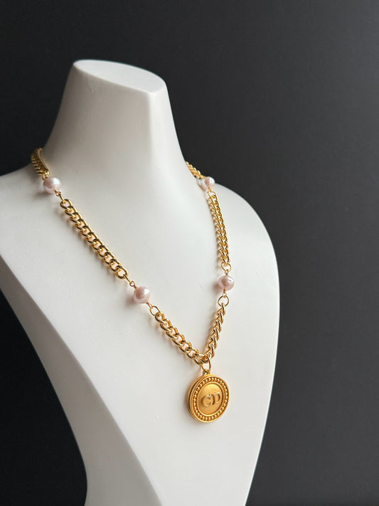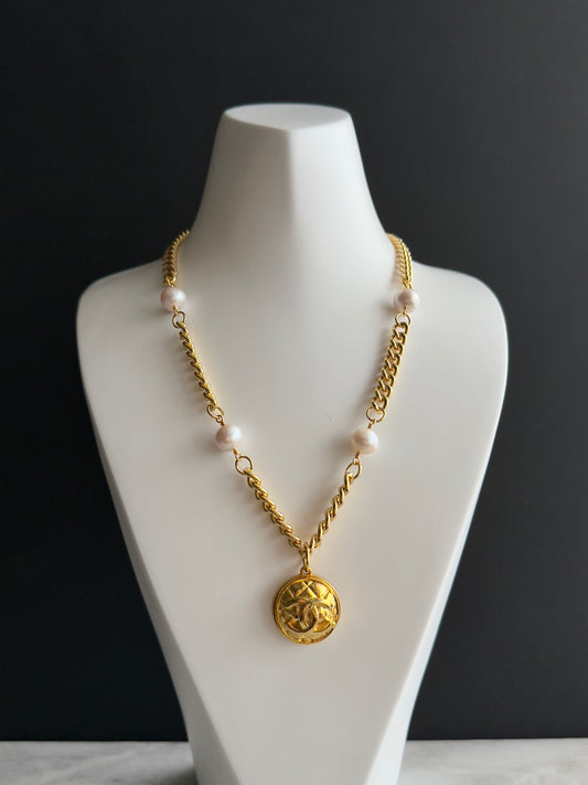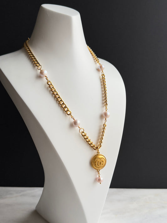 Extremely rare Authentic Reworked Dior gold Button Necklace