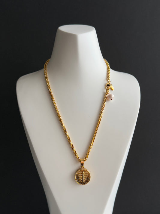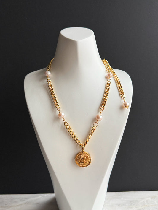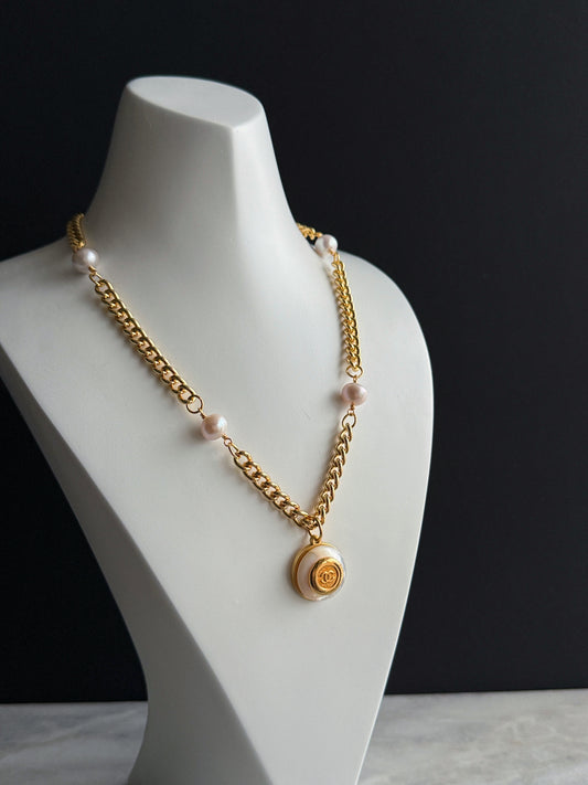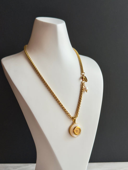 Vintage Authentic reworked Gold button and Mother of pearl Necklace