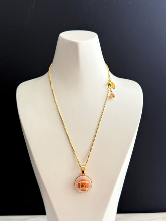 🧡 EXTREMELY RARE MOTHER OF PEARL and Authentic reworked Gold button Necklace