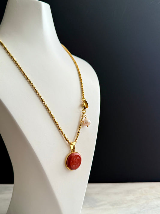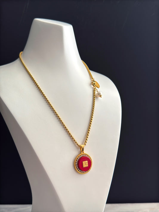 🌹 burgundy Vintage Authentic reworked Gold button Necklace