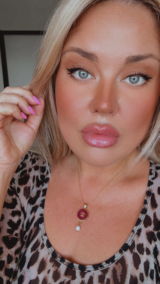 🌹”Kitty” burgundy Vintage Authentic reworked Gold button Necklace
