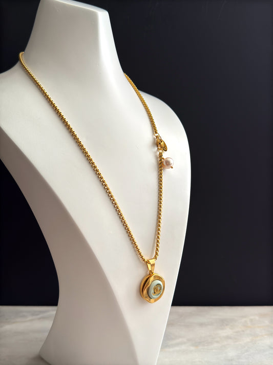 🤍 MOTHER OF PEARL One of a kind Authentic Reworked Louis Vuitton button necklace