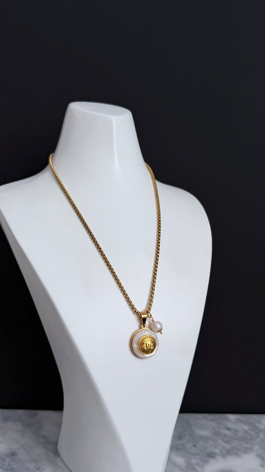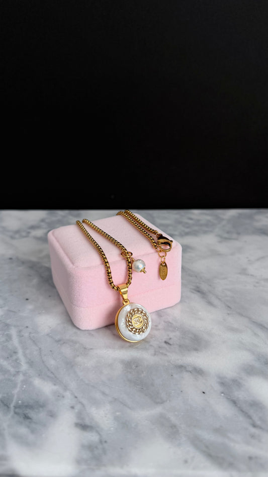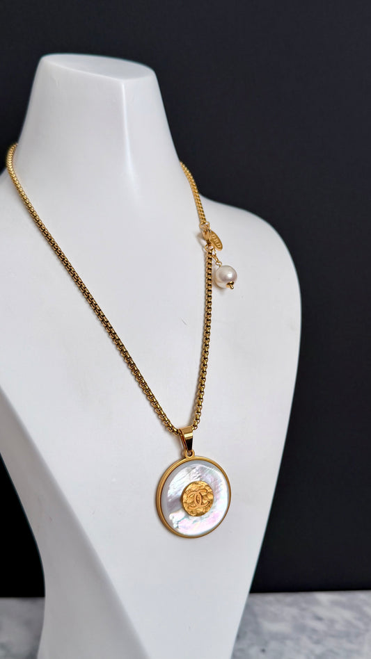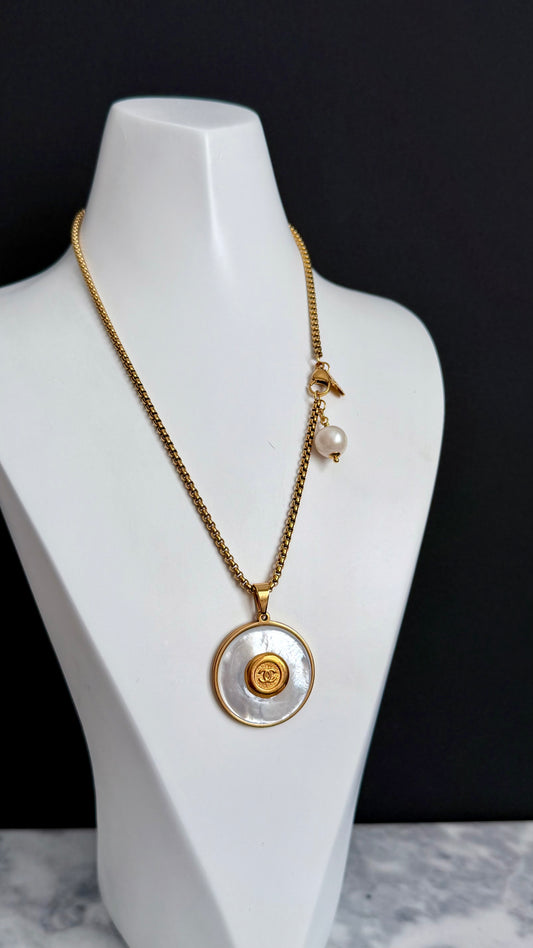 SUPER RARE MOTHER OF PEARL and Vintage Authentic reworked Gold button Necklace