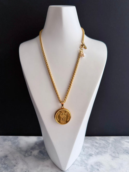 ✨HUGE CC Extremely rare Authentic Reworked gold Crown Button Necklace