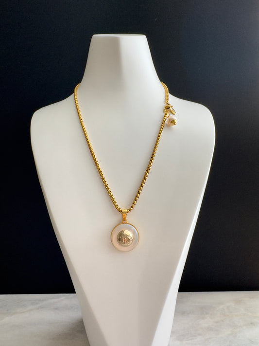 SUPER RARE MOTHER OF PEARL and Authentic reworked Gold button Necklace