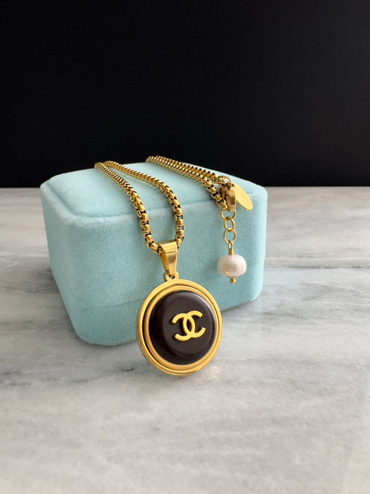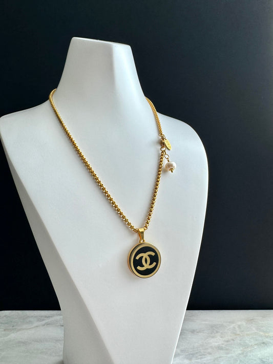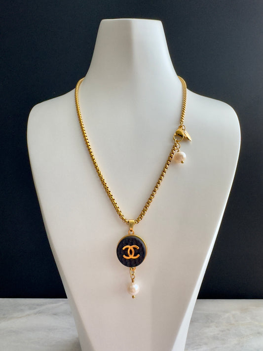 Sold out🖤 reworked black button necklace