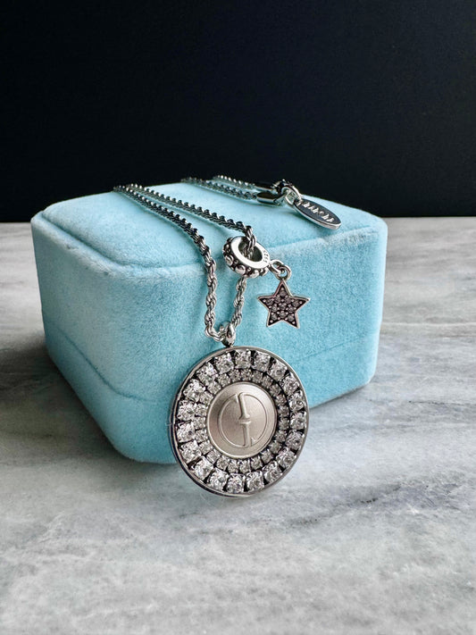 Authentic Reworked silver Gucci Button made with a leather necklace