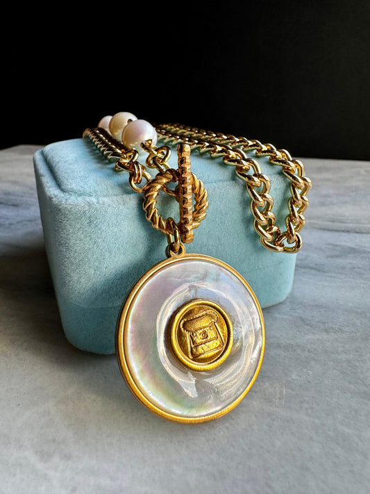 SUPER RARE Large MOTHER OF PEARL and Vintage Authentic reworked Gold button Necklace
