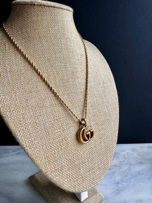 Vintage gold Gucci GG charm chain necklace • high quality wheat chain