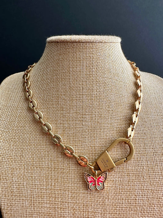 🦋 Antique Gold Vintage Gucci Keychain charm chain choker • high quality wheat chain