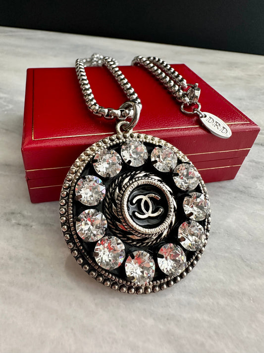 Huge One of a kind silver crystal Authentic Reworked button necklace