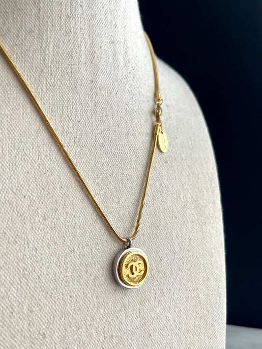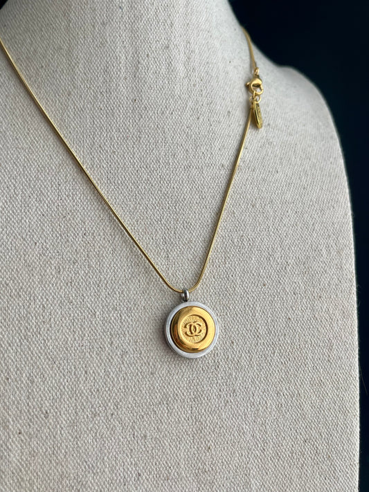 Vintage Authentic mixed silver+ gold reworked button Necklace - VERY rare!