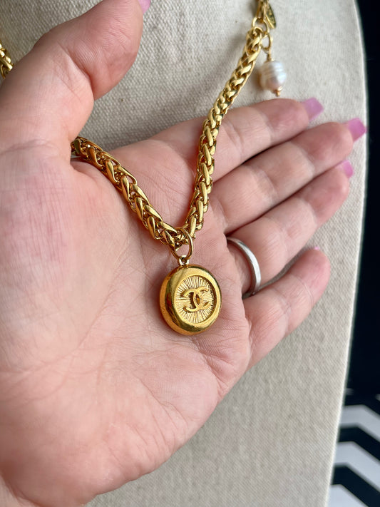 SUPER RARE Large Vintage Authentic reworked Gold button Necklace
