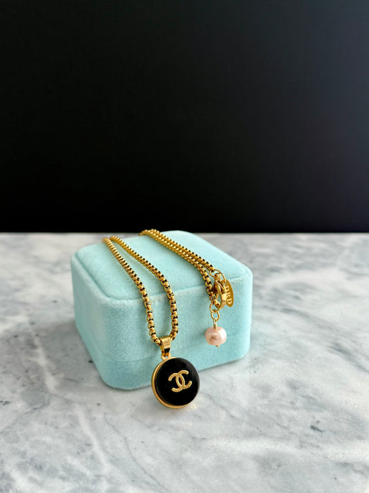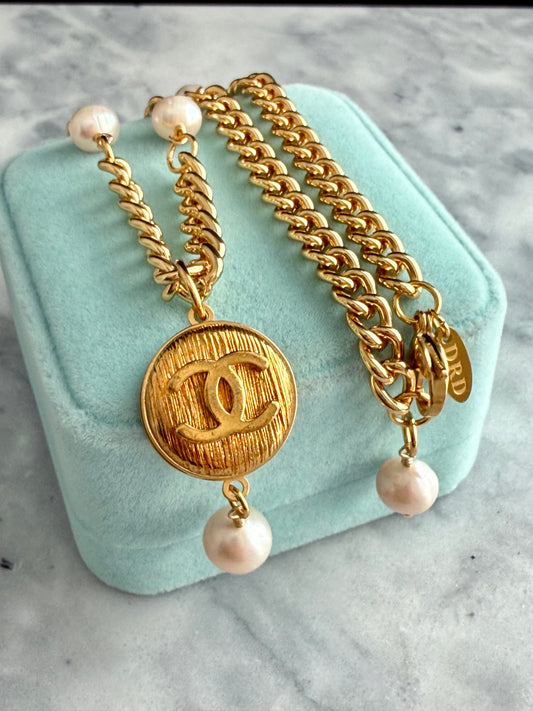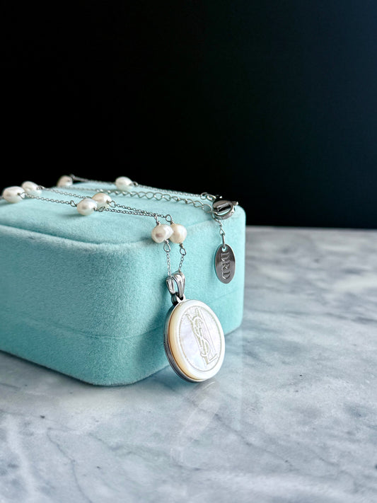 🤍 One of a kind Authentic YSL Reworked button pearl necklace -