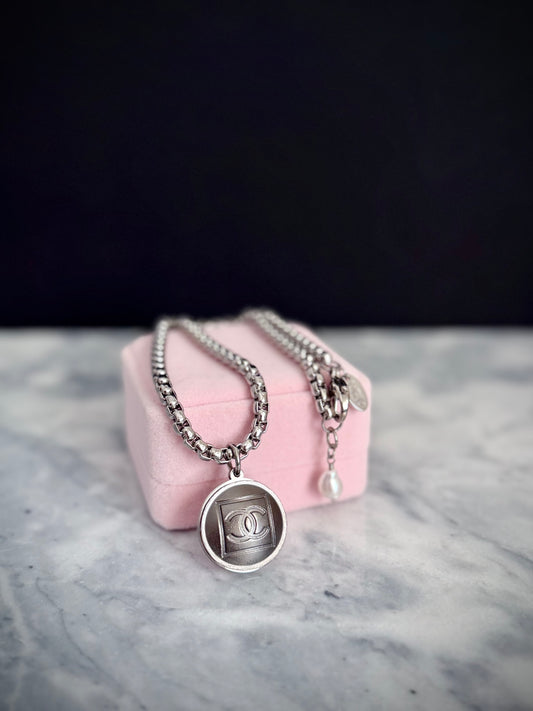 🤍 ONE OF A KIND - Authentic Reworked silver Button Necklace
