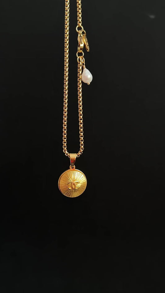 ✨Large Vintage gold Authentic reworked pendant Necklace