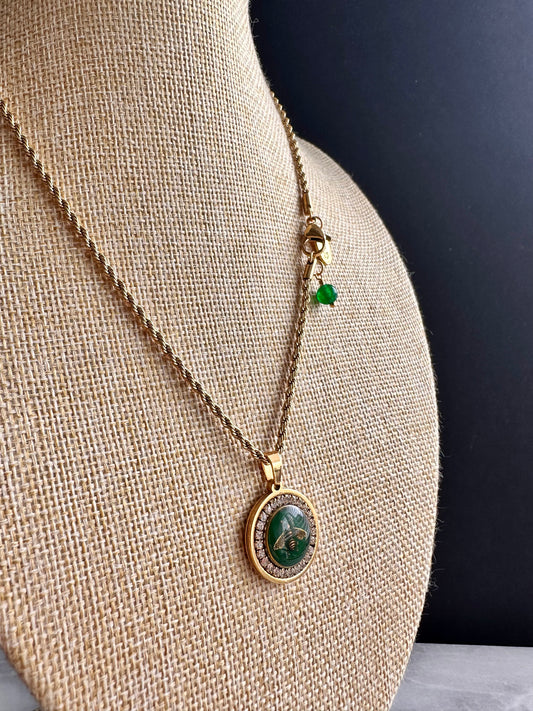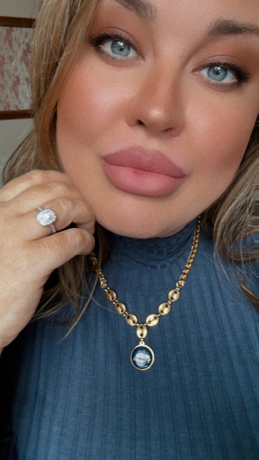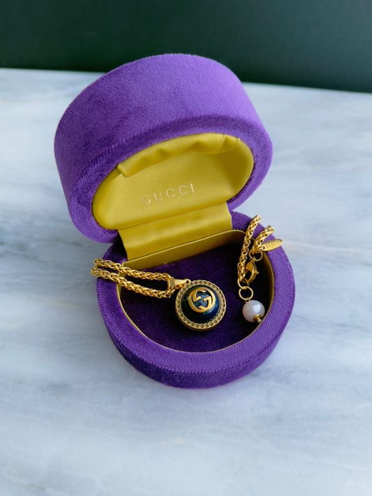 Antique Gold reworked Dark Navy Gucci necklace • high quality