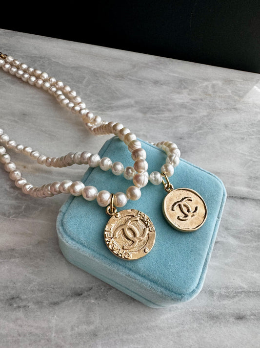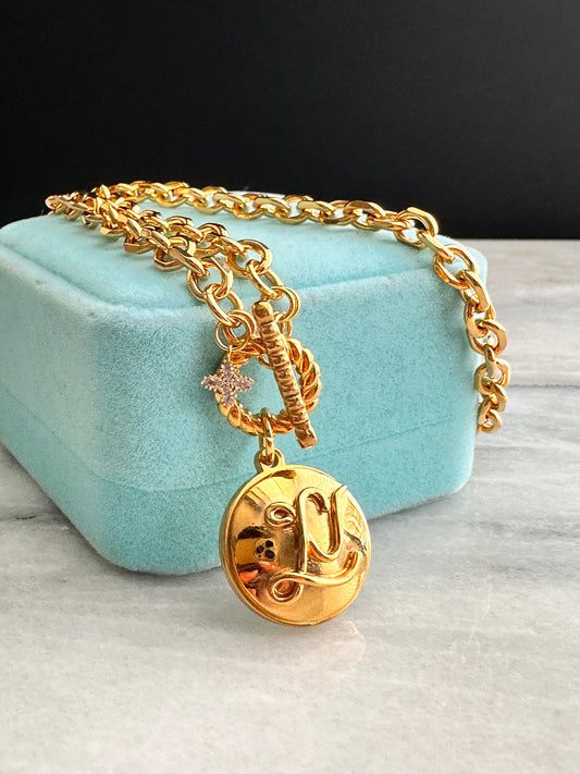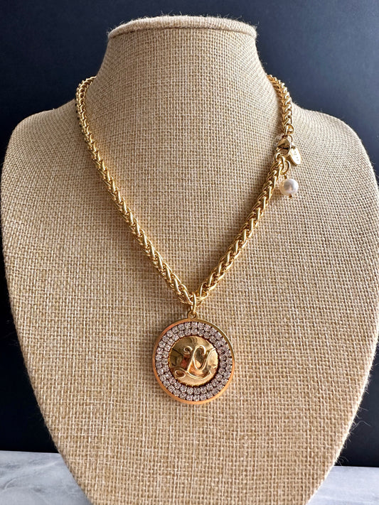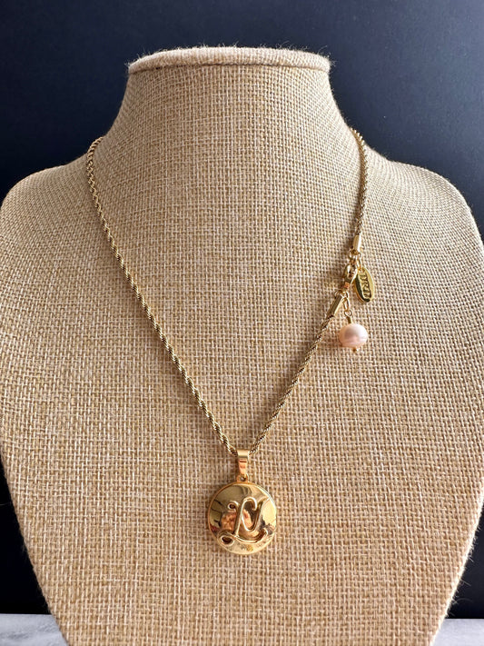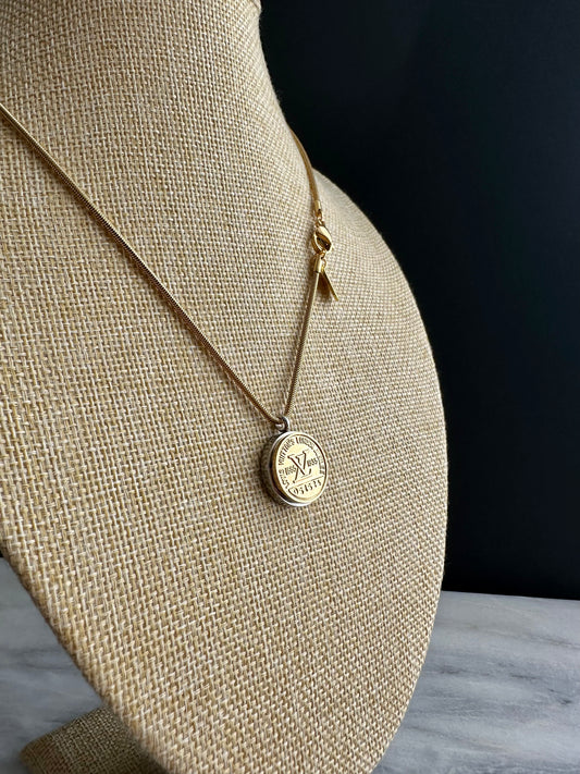 Authentic gold reworked Louis Vuitton charm disc Necklace - VERY rare!