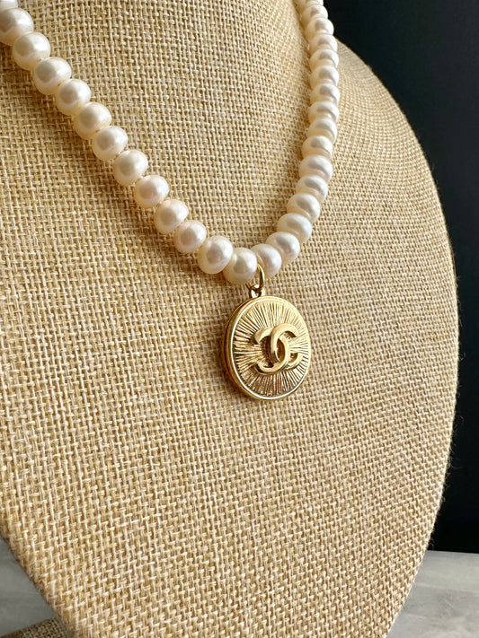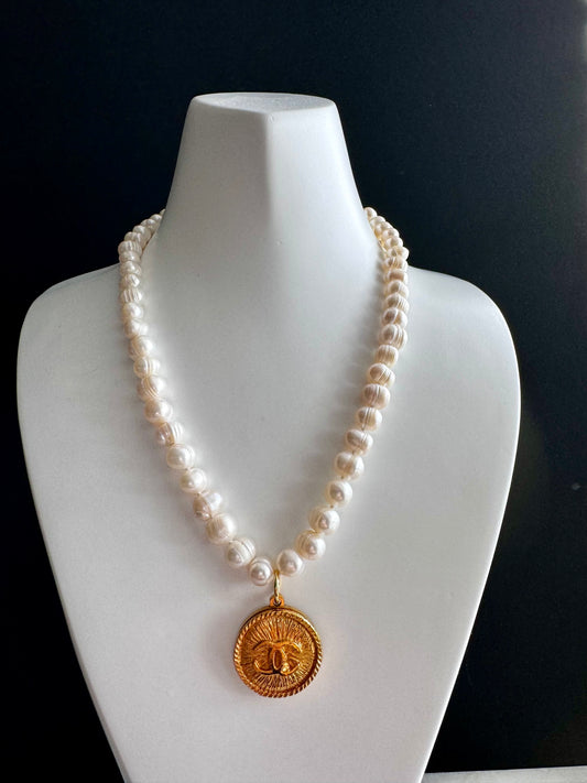 Authentic gold reworked Louis Vuitton button Necklace - VERY rare!