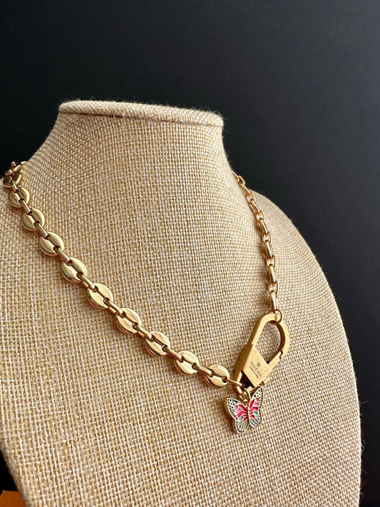🦋 Antique Gold Vintage Gucci Keychain charm chain choker • high quality wheat chain