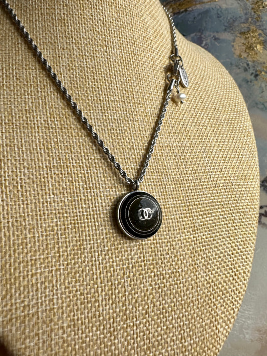 💞 Authentic Reworked silver and black enamel Button Necklace