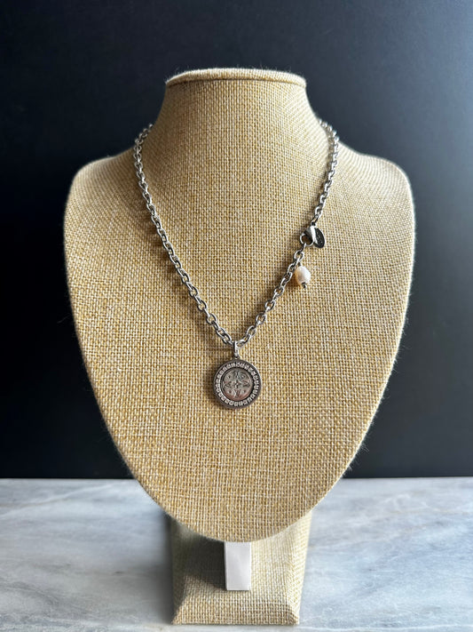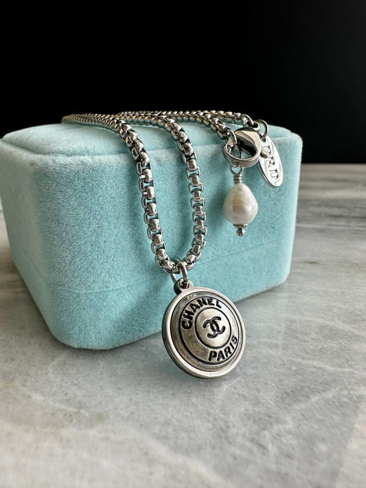 🖤 Authentic Reworked silver LargeButton Necklace l