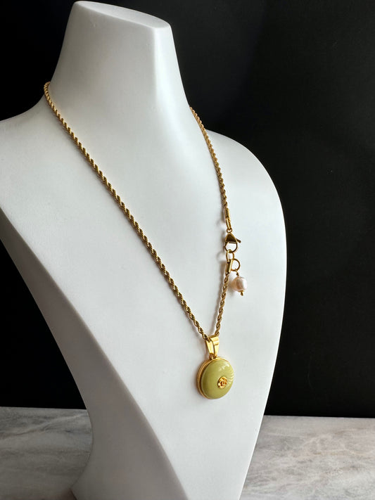 🧡 EXTREMELY RARE MOTHER OF PEARL and Authentic reworked Gold button Necklace