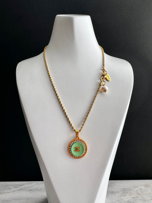💚 EXTREMELY RARE reworked button necklace in mint green