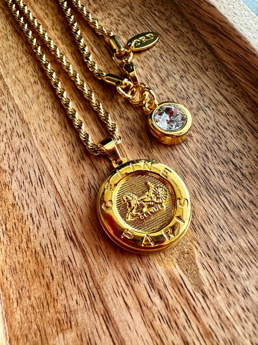 💗 Vintage Authentic reworked Celine Gold button Necklace