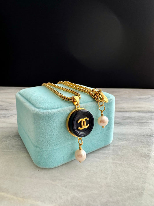 💞 Vintage Authentic reworked Celine Gold button Necklace