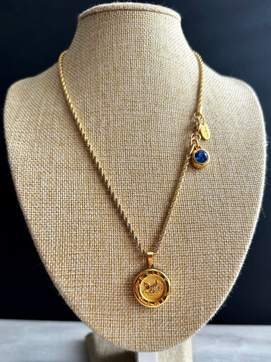 💙 Vintage Authentic reworked Celine Gold button Necklace