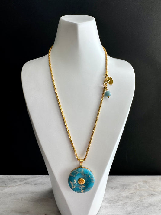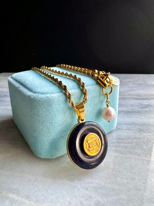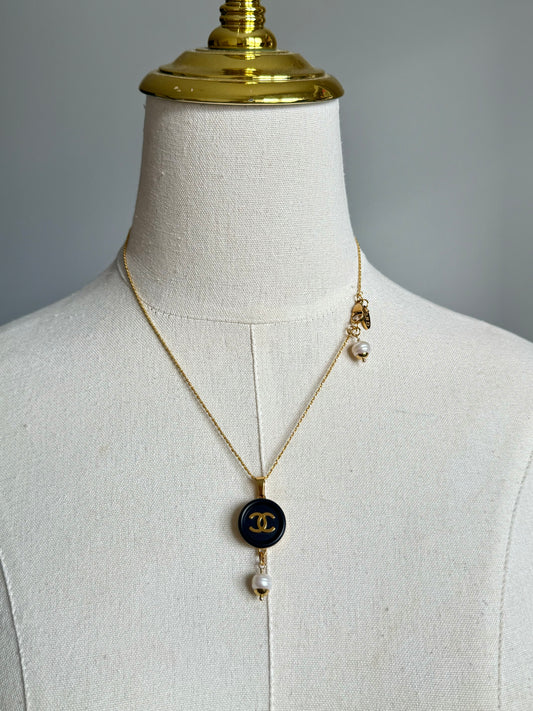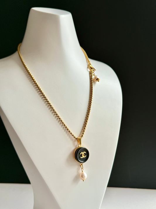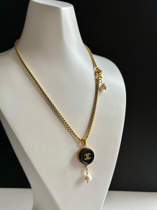 🖤 Vintage Authentic reworked Gold button Necklace. Gold vermeil over sterling silver