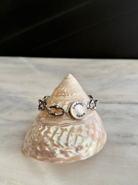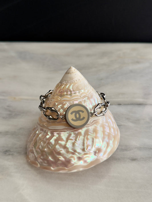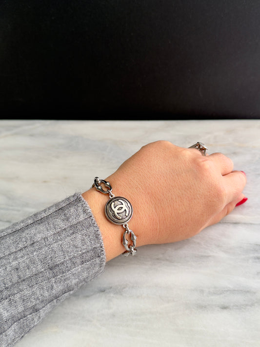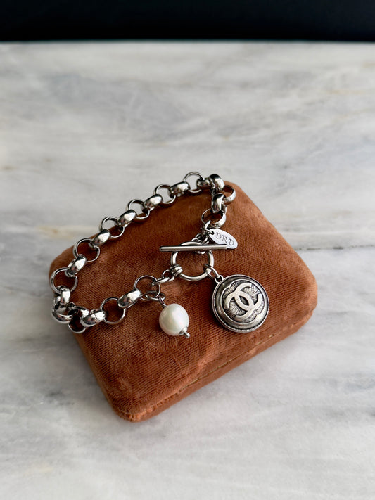 ✨ONE OF A KIND silver reworked button bracelet • rolo chain