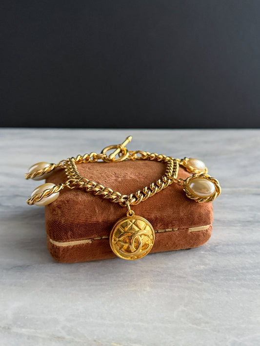 Gold chunky Authentic Reworked button bracelet pearls 🖤