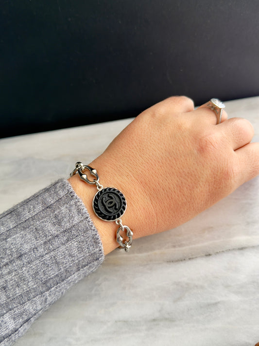 ✨ONE OF A KIND silver and black reworked button bracelet • large unique non tarnish chain