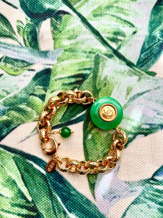 💚 Vintage reworked button and green jade stone bracelet
