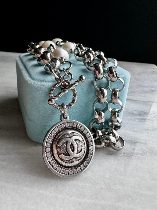 ✨ Extremely rare Authentic Reworked silver Button Necklace
