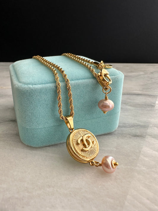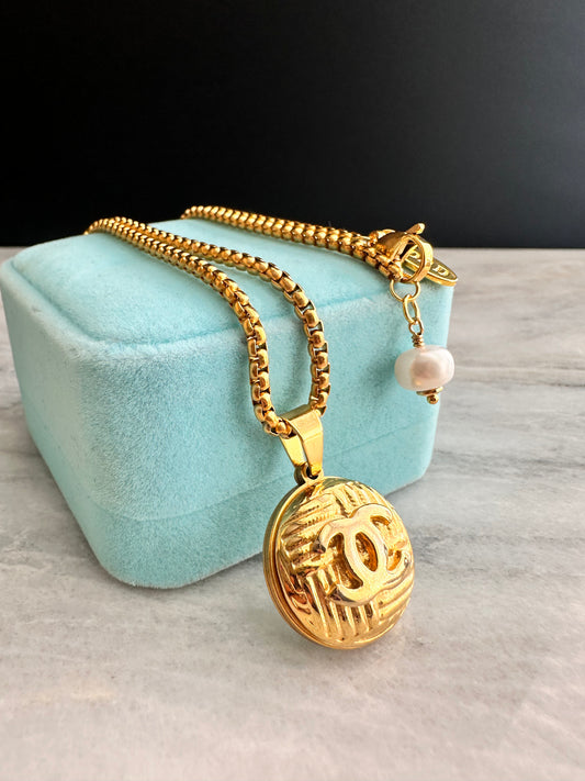Authentic gold reworked Louis Vuitton button Necklace - VERY rare!