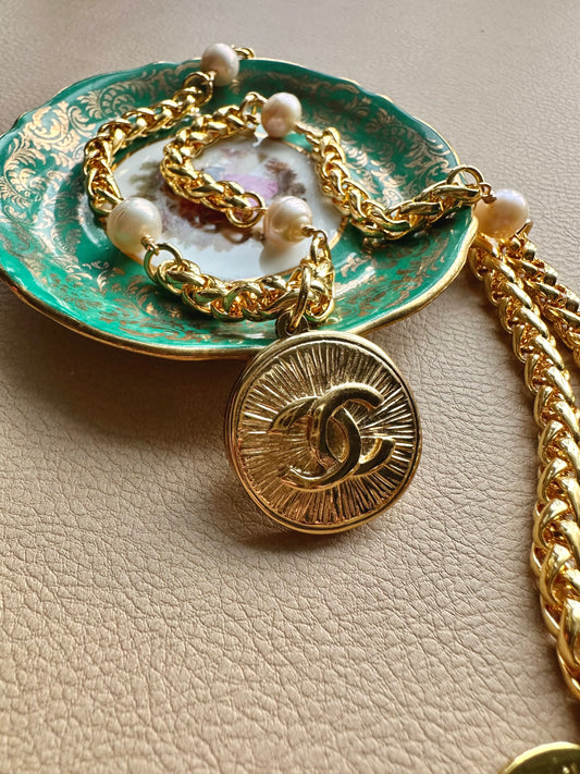 SUPER RARE Vintage Authentic reworked Gold button Necklace