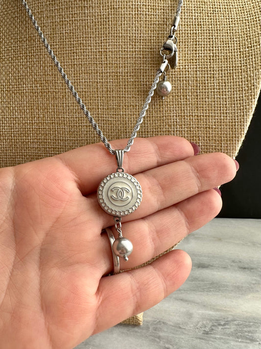 Edgy Gunmetal Vintage Reworked Authentic silver button necklace