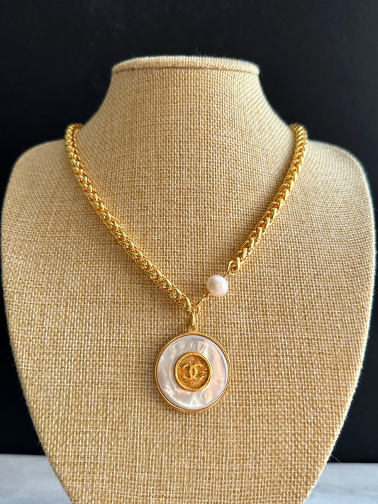 SUPER RARE Large MOTHER OF PEARL and Vintage Authentic reworked Gold button Necklace