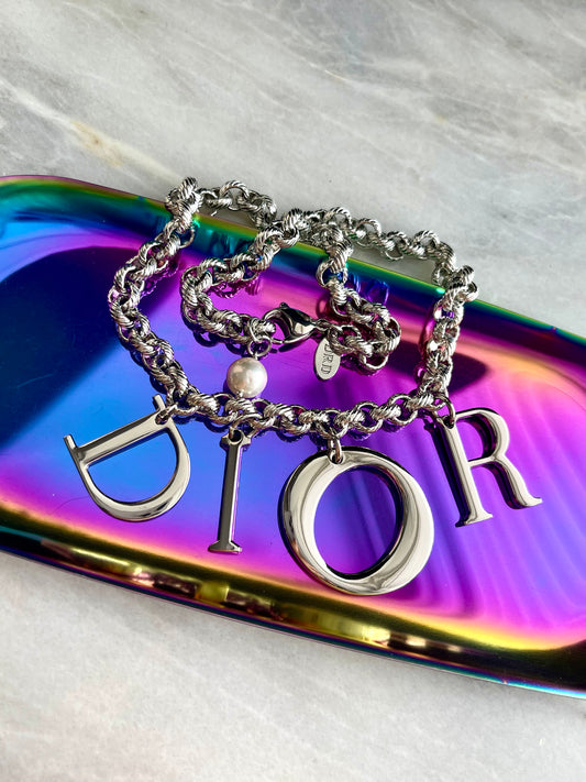 Vintage Authentic Silver DIOR charm Asymmetrical Necklace • Very Rare Vintage Find 👌🏻✨