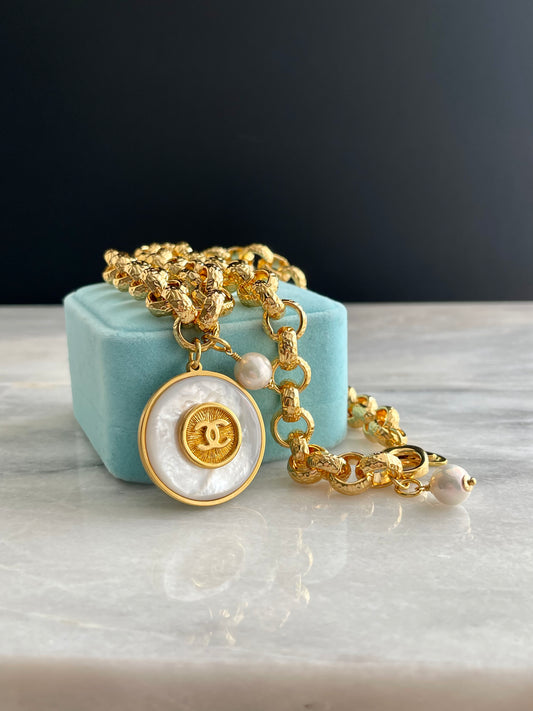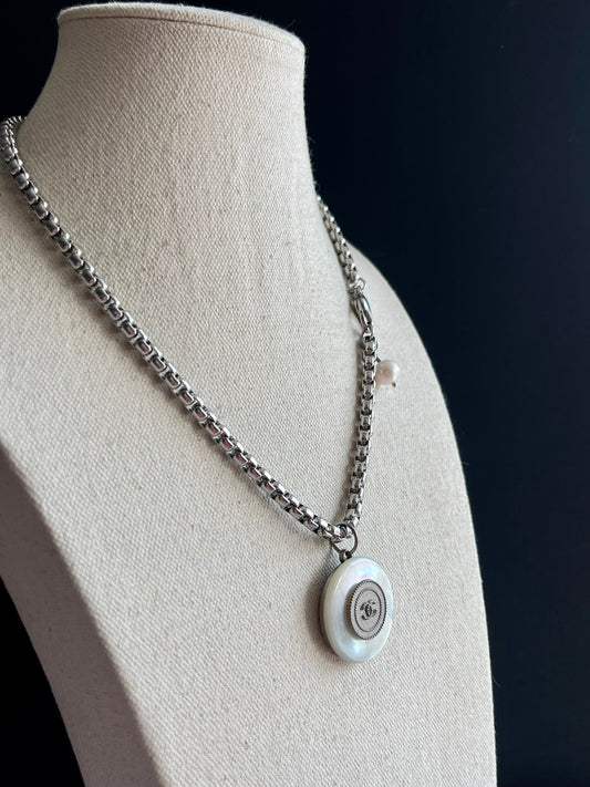 MOTHER OF PEARL One of a kind Authentic Reworked button necklace