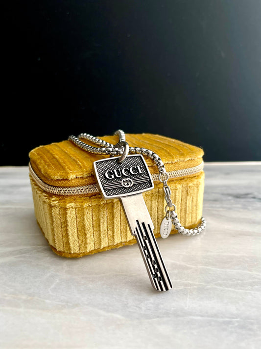 Antique Silver Vintage Gucci charm chain necklace • high quality intricate chain