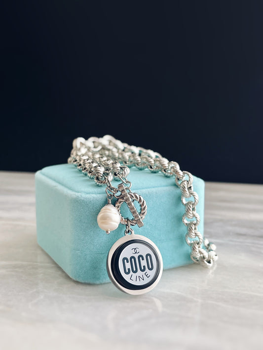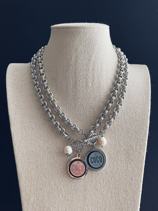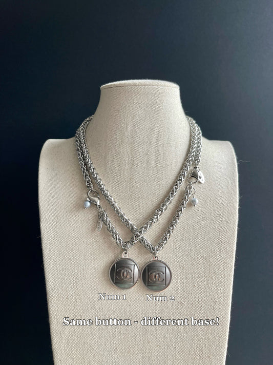 Num 1 Edgy Gunmetal Vintage Reworked Authentic silver button necklace
