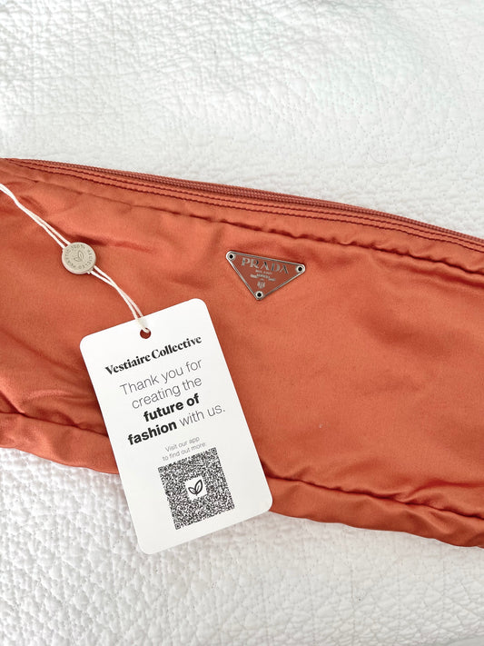 Authentic Large silver PRADA charm Necklace in Burnt Orange